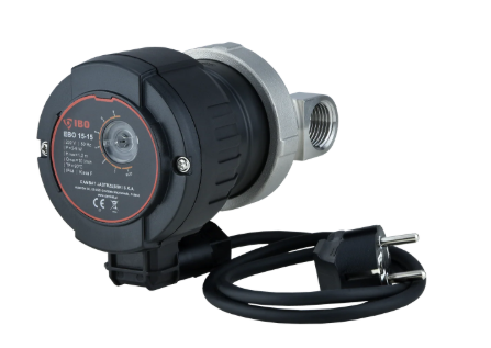 Pompa cyrkulacyjna do wody użytkowej EBO 15-15 IBO jest kompaktowym urządzeniem przeznaczonym do cyrkulacji wody użytkowej w instalacjach o maksymalnym ciśnieniu roboczym 1,0 MPa, wyposażonym w silnik z magnesem stałym oraz elektroniczną regulację prędkości obrotowej, co pozwala uzyskać wysoką sprawność energetyczną przy mocy silnika 2-9 W i poborze energii do 9 W.