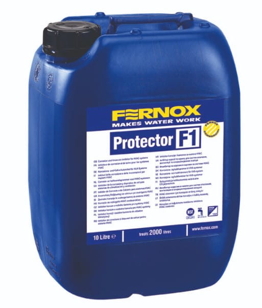 Protector F1 chroni przed korozją i tworzeniem się osadów kamienia w systemach HVAC oraz niezbyt obciążonych komercyjnych instalacjach ogrzewania i chłodzenia. Produkt ten zapewnia również doskonałe buforowanie pH, co sprawia, że odczyn wody obiegowej pozostaje w optymalnym zakresie pH, zapobiegając korozji w instalacjach zawierających kombinacje różnych metali. Protector F1 jest kompatybilny ze wszystkimi innymi produktami handlowymi Fernox i nadaje się do stosowania ze wszystkimi materiałami i metalami powszechnie używanymi w instalacjach ogrzewania i chłodzenia, w tym stalą i aluminium. Jedna dziesięciolitrowa dawka produktu pozwala uzyskać zalecane do uzdatnienia wody stężenie 0,5% w instalacji o pojemności do 2000 litrów. W celu zapewnienia maksymalnej ochrony, stężenie preparatu powinno być regularnie sprawdzane i w miarę potrzeby zwiększane.