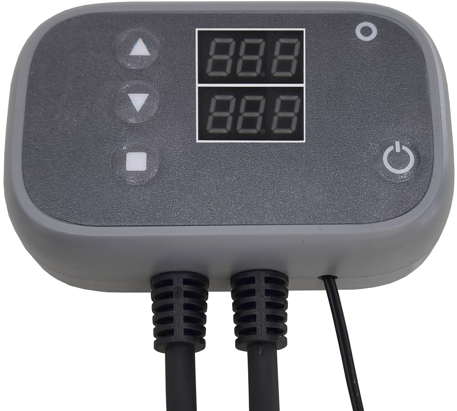 Sterownik wyposażony jest w 2 wyświetlacze LED. Na górnym standardowo wyświetlana jest aktualna temperatura