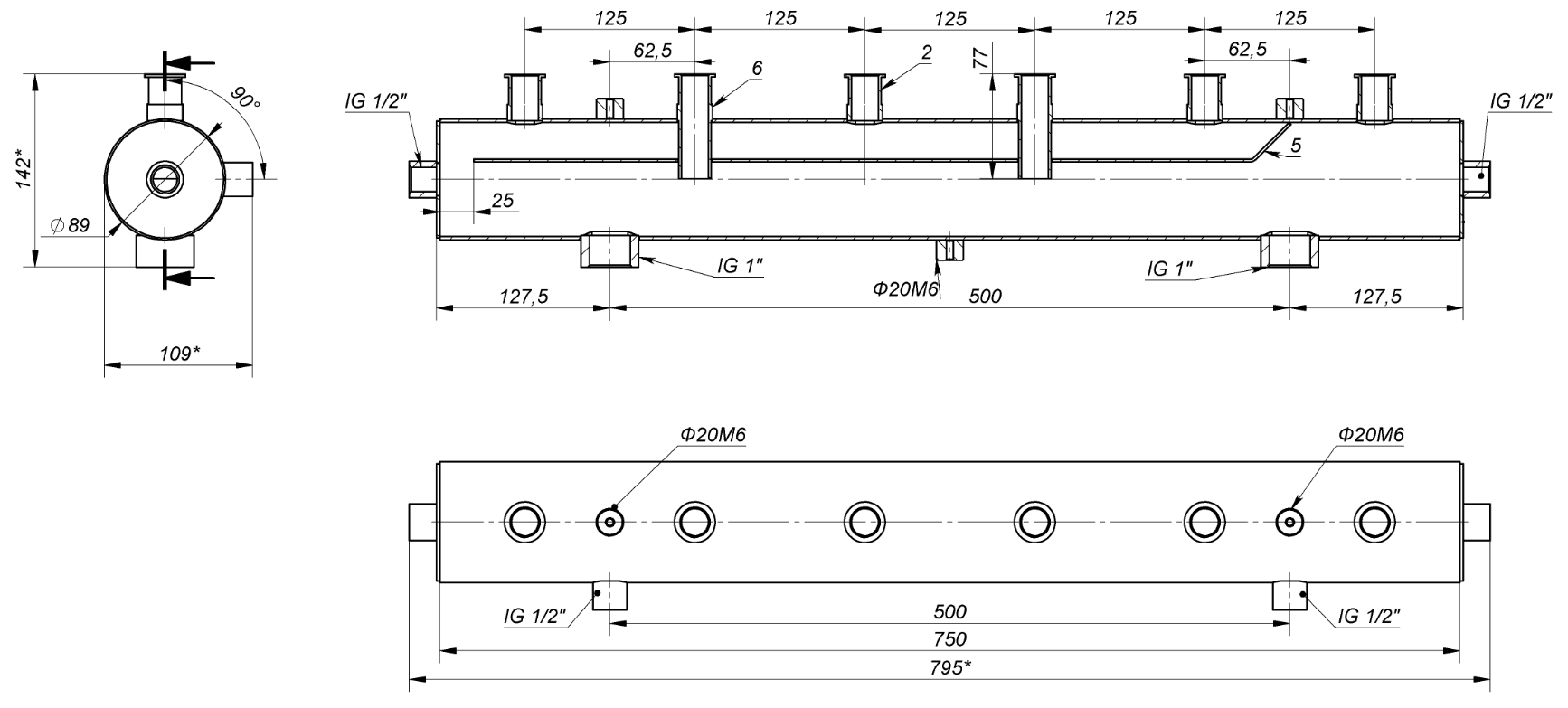 Sprzęgło pionowe 3 obiegi. Zwrotnica + uchwyt. LEWE zasilanie