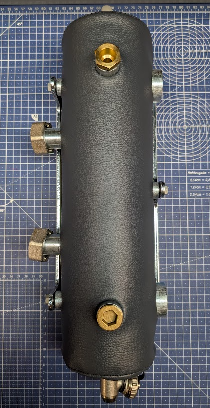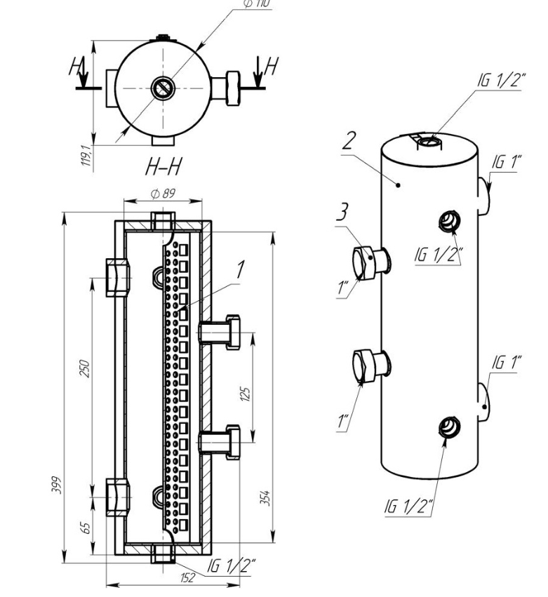 - 4 króćce 1“ do rur DN25 obiegów grzewczych, - 1 króciec ½“ do czujnika temperatury, - 1 króciec ½“ na górze do odpowietrznika, - 1 króciec ½“ na dole do zaworu spustowo/napełniającego.