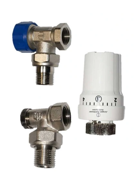 ZESTAW TERMOST.KĄTOWY DO GRZEJ.BOCZNYCH / ZAWÓR TERMOST+GŁOWICA CIECZ+ZAWÓR POWROTNY (1)