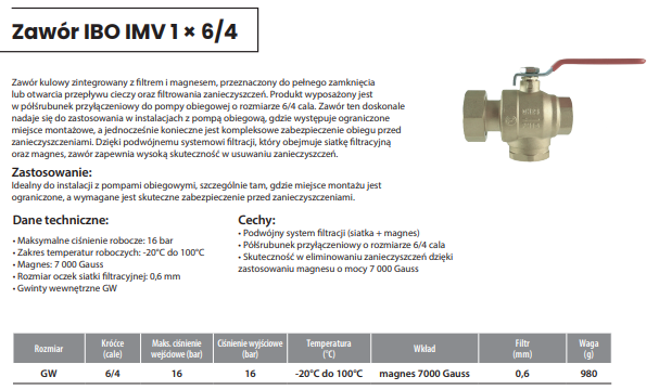 Zawór IBO IMV 1 × 6/4 Zawór z filtrem i magnesem do pompy